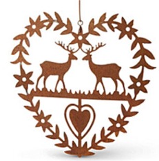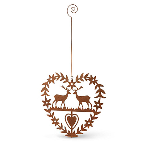 Gisela Graham hangornament hart met 2 rendieren, kleur roestbruin.