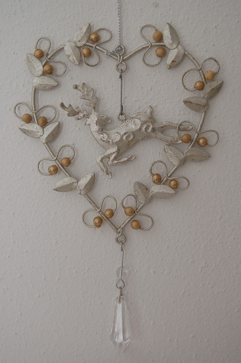 Zilverkleurig hangertje hartje met rendier, maat 13 cm.