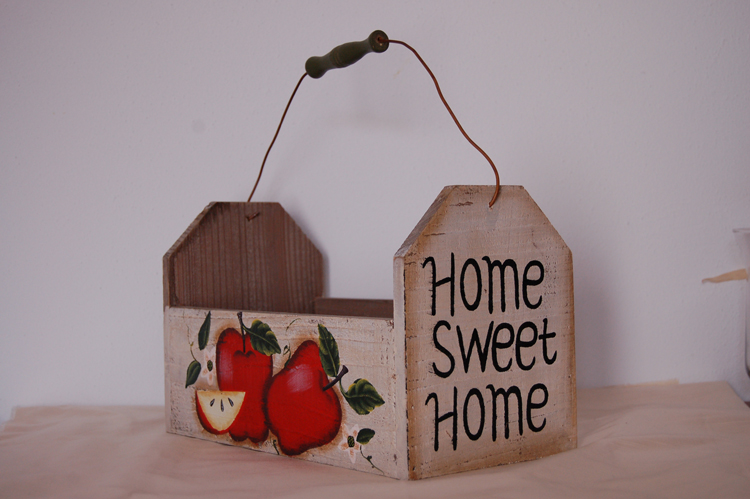 Houten mandje met hengsel en dekoratieve opdruk Home Sweet Home.