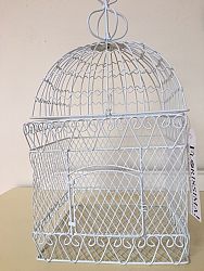 Leuke vogelkooi te gebruiken als plantenmand of andere decoratieve doeleinden. Kan van bovenaf opengeklapt worden en heeft ook een deurtje aan de voorkant maat h50 x b 21 x d21.