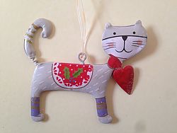 Hangornament kat van tin met rood hartje en rode rug